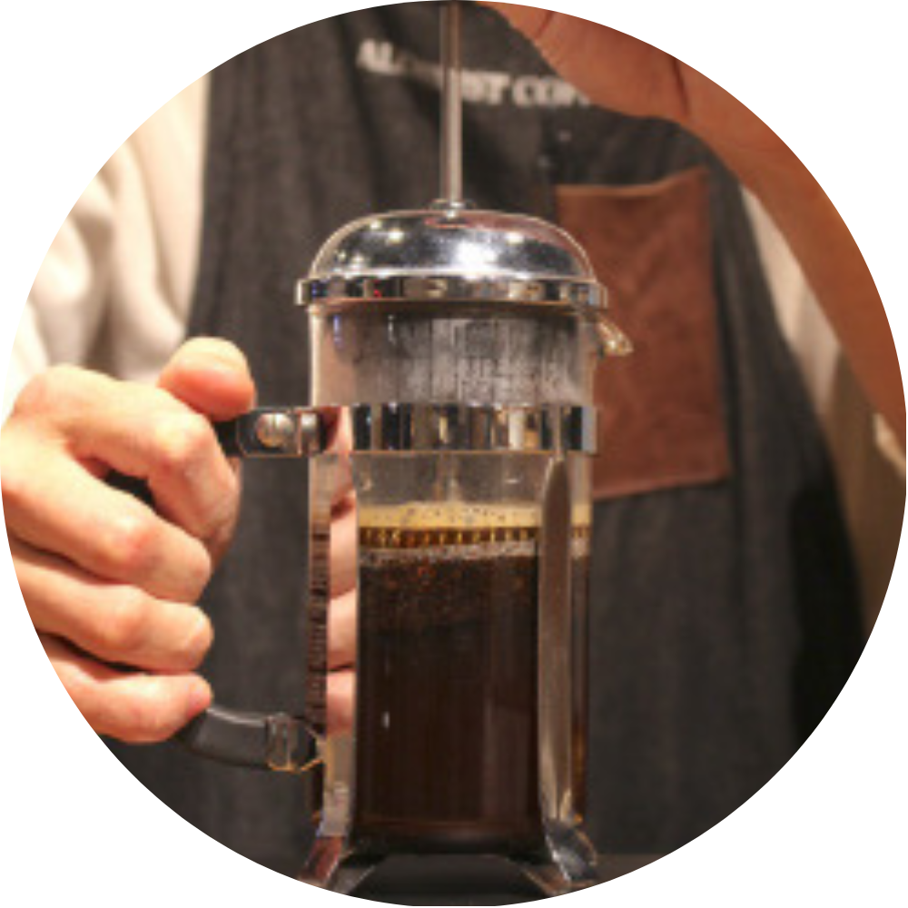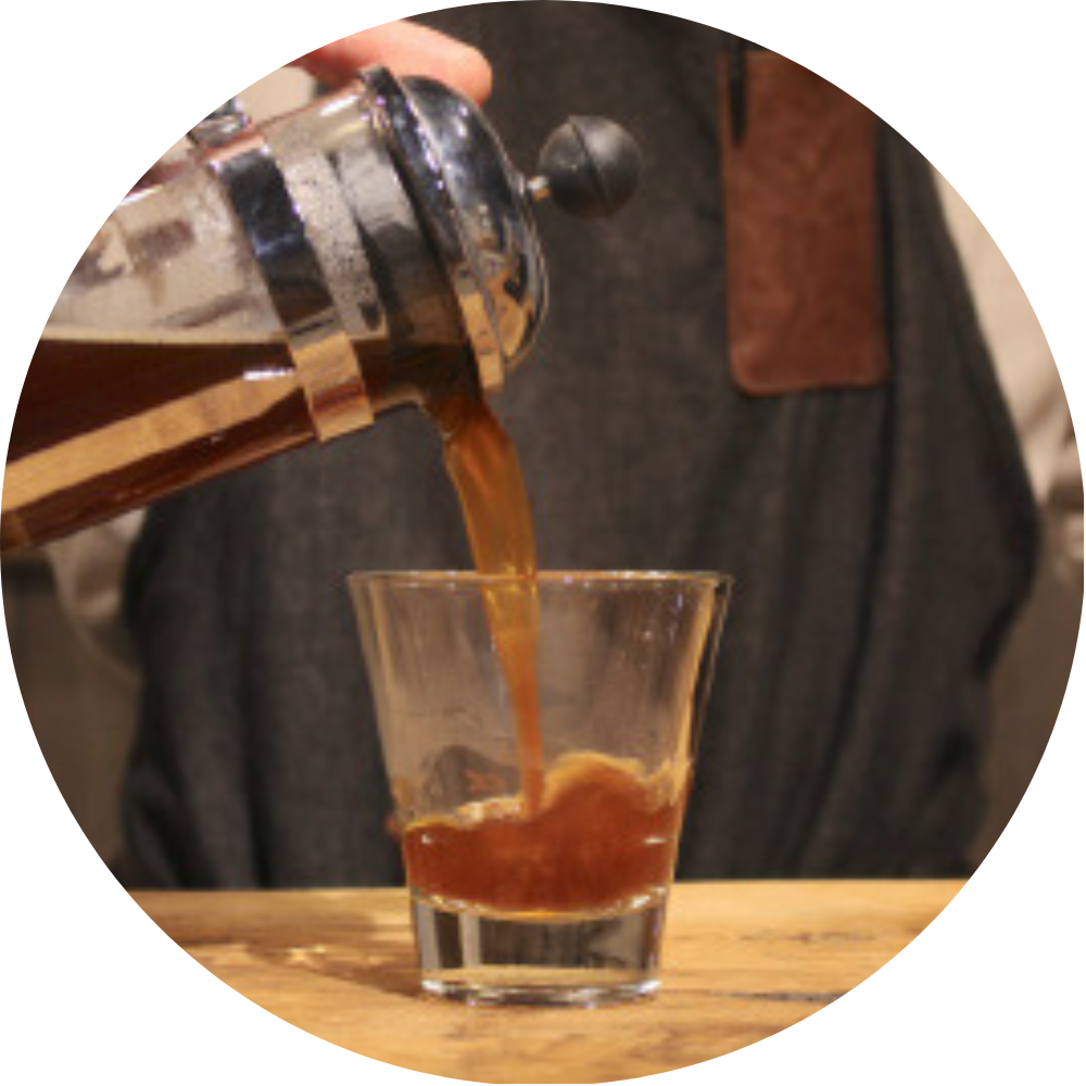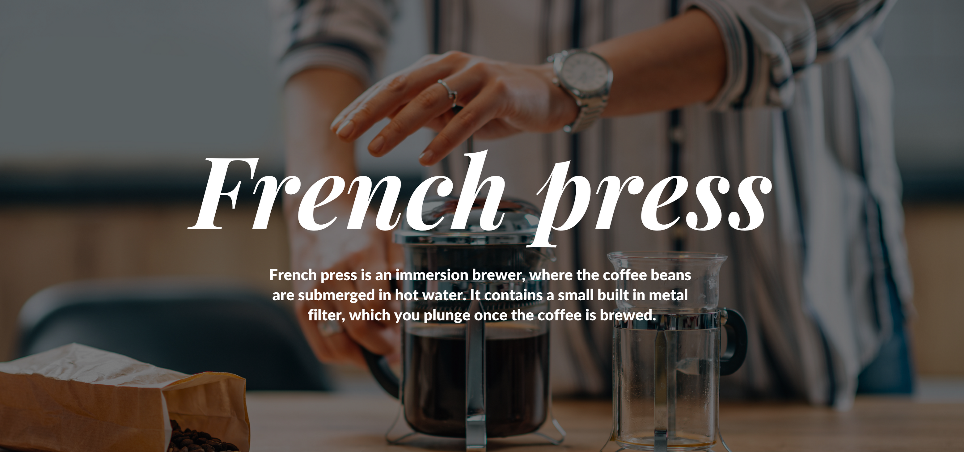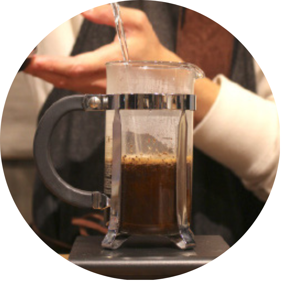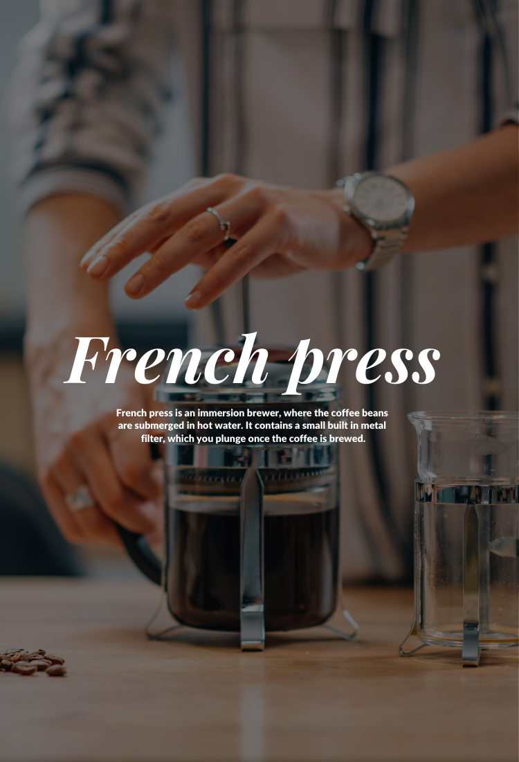 This brewing method is one of the easiest ways to make coffee. The coffee is submerged in hot water for the full brewing time, resulting in a full bodied cup of coffee. It offers more punch than a pour over . Finally, the use of a metal filter helps extracts some of the bean’s natural oils, creating an umami packed and silly cup of coffee.