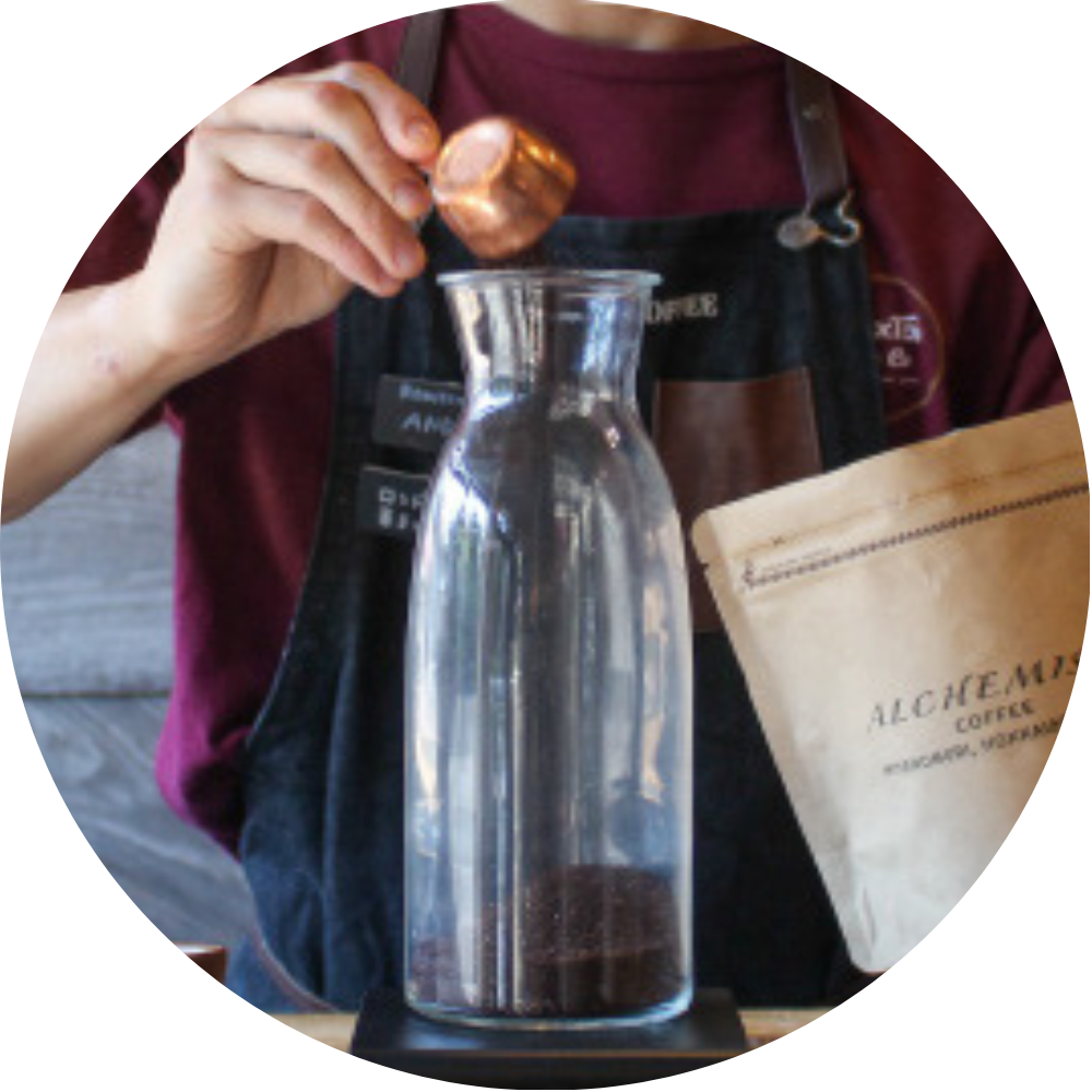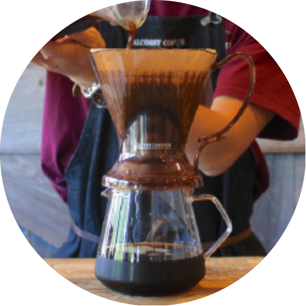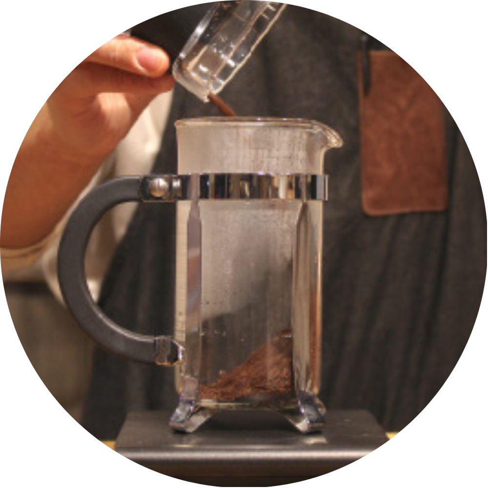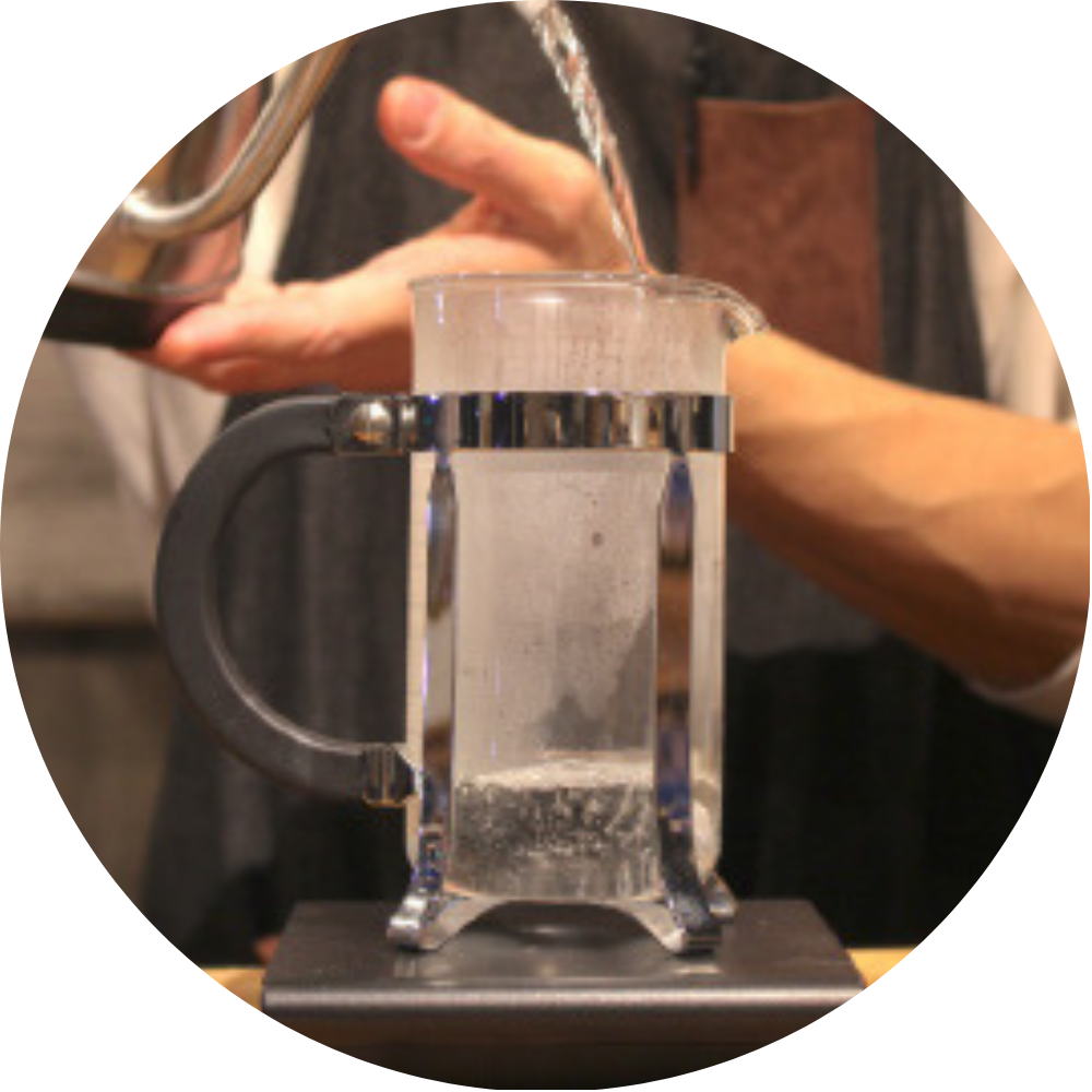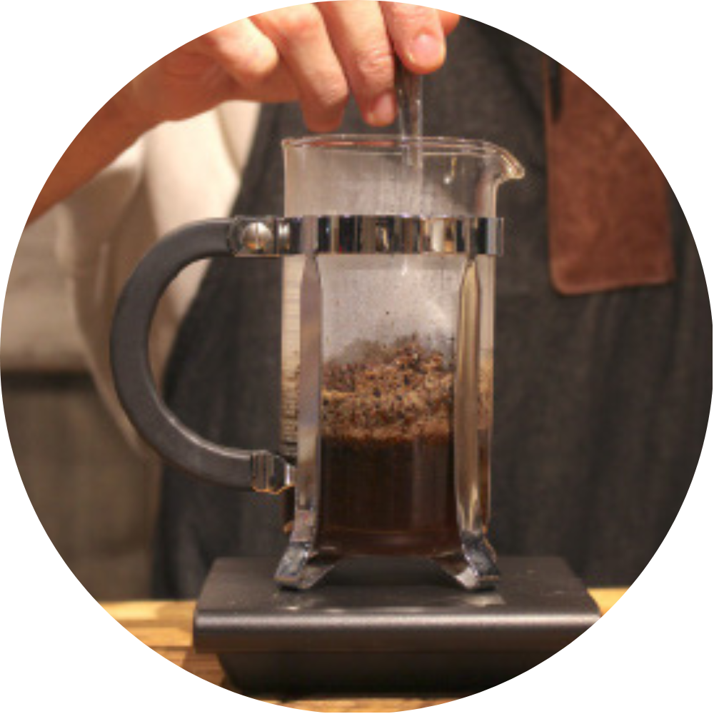 This brewing method is one of the easiest ways to make coffee. The coffee is submerged in hot water for the full brewing time, resulting in a full bodied cup of coffee. It offers more punch than a pour over . Finally, the use of a metal filter helps extracts some of the bean’s natural oils, creating an umami packed and silly cup of coffee.
