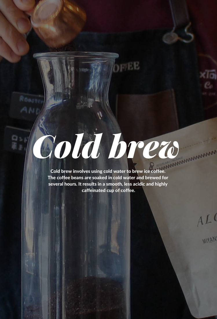 Cold Brew is a great way of stocking up on ice coffee during the summer. You can make a large batch and keep in the fridge for a week. It differs to regular ice coffee as it brings out the chocolate and caramel notes of coffee. It goes great with milk and syrup or just as it is!